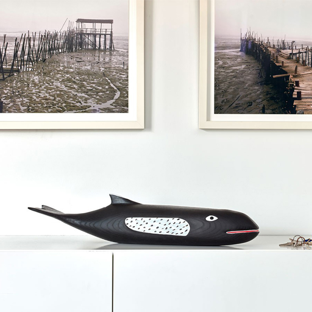 內容簡介 總是喜歡穿著寬鬆開領襯衫和褲子的 Charles Eames,是身兼建築師、發明家、設計師、科學家、電影人等多職的創作家;而浪漫、情感豐沛的 Ray 則是偏愛短袖襯衫與長裙的淑女搭配 ,對於畫作與藝術有著痴迷的熱愛,並收藏著世界各地新奇有趣的物件。他們之間碰撞出的熱情和火花更是延續到設計創作方面,一起研究不同材料結構和技術生產,再將彼此的奇思妙想一一實現,在南加州西北郊濱海小城林間打造了屬於他們的打造 Eames house。一覽廣闊的加州海岸線,充滿現代主義建築語彙的 Eames house,自 1949 年 Charles & Ray Eames 居住後便沒有再搬離過,他們在這間房子裏注入了各種浪漫的想象,五顏六色的玻璃將光影的美妙變化裝入房間內,書架和地板上擺滿了他們從各國旅遊帶回來珍藏的傳統風俗文物和民間藝術品。其中在建築內最核心的基地:工作室,懸吊著一隻超過兩米長的巨大木鯨,陪伴著他們創造出影響一世紀的設計潮流。在兩人居家生活照中,也經常能瞧見這件美國手工民藝雕塑木鯨的身影。Vitra 以北美赤樺木重新再製而成縮小版的木鯨,赤樺木木質細緻、紋理均勻,經手工繪製上漆,良好的著色加工效果,賦予木製品最真實自然的外觀,也突顯出手工製作的精緻工藝。以單純簡潔的線條弧度,表現出鯨魚仿若蘊含壯闊海洋奧秘的特徵,遨遊的身軀緩緩映滿眼簾,絕對是每位設計粉絲都想擁有的夢幻逸品!產地:德國材質:北美赤樺木尺寸:長 70 x 寬 14(公分)商品說明:1. 此商品為天然木料製成,此材料會根據生長條件產生天然木紋、裂痕、木節及顏色深淺之差異,此為正常現象,訂購時恕無法指定特定外觀條件。2. 此商品建議擺放於日常空間濕度及溫度空間中,請避免擺放於潮濕或刻意放置於過於乾燥(包含持續除溼)之處。注意事項:顏色略有偏差,以實品顏色為準