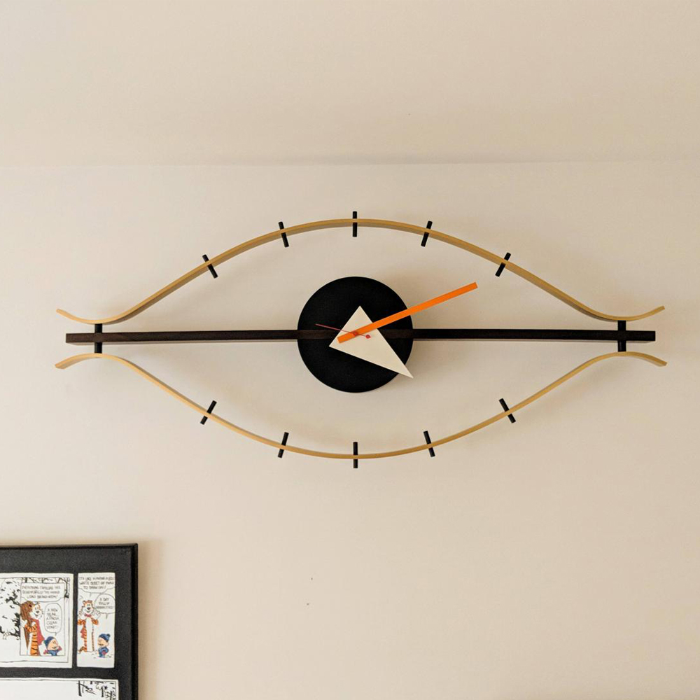 內容簡介 莎士比亞最著名的十四行詩中,將眼睛比擬為愛情的面貌,揭示了隱藏的深層情感,為人們帶來看待愛情的不同角度,或會心一笑的領會。而美國設計大師 George Nelson 則將靈魂之窗賦予了新的生命,栩栩如生的迷人眼眸,設計為掛鐘的嶄新意象,以纖長的睫毛取代數字,指針覆蓋在明亮而深邃的眼眸上,那經過生活著墨過的時光盡收眼底,似乎也讓時間更輕鬆緩慢了些。超越半世紀不變的設計堅持使用紮實木料或金屬拋磨,將代表性的幾何放射圖騰刻畫整齊,這是 George Nelson 掛鐘系列經典的製程手法,正因為俐落整齊的排列,搭配鮮豔特選的色彩,無論是在風格獨具或素淨雅緻的牆面,都能奪目耀眼。現今許多歐洲的家具老件收藏,還是能見到 George Nelson 的掛鐘作品,刻意不規則的設計、強烈的雕塑感,更顯獨特韻味。產地:波蘭設計年份:1948-1960機芯:德國機芯材質:黃銅、胡桃木尺寸:長 76 x 寬 34(公分)電池:AA 1.5V(3號電池1顆)請使用碳鋅電池,勿使用鹼性電池保固時間:非人為因素機芯保固兩年使用說明:1. 當時鐘停止走動,請立即更換電池;或長時間不使用時,請取出電池,避免電池漏液損壞商品2. 請使用指針調節旋鈕設定時間,勿用手指直接轉動指針,避免指針、機芯損壞3. 時間調整方式說明請 點此觀看注意事項:顏色略有偏差,以實品顏色為準