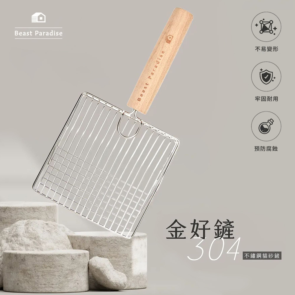 【毛怪樂園】金好鏟304不鏽鋼櫸木貓砂鏟 單入組