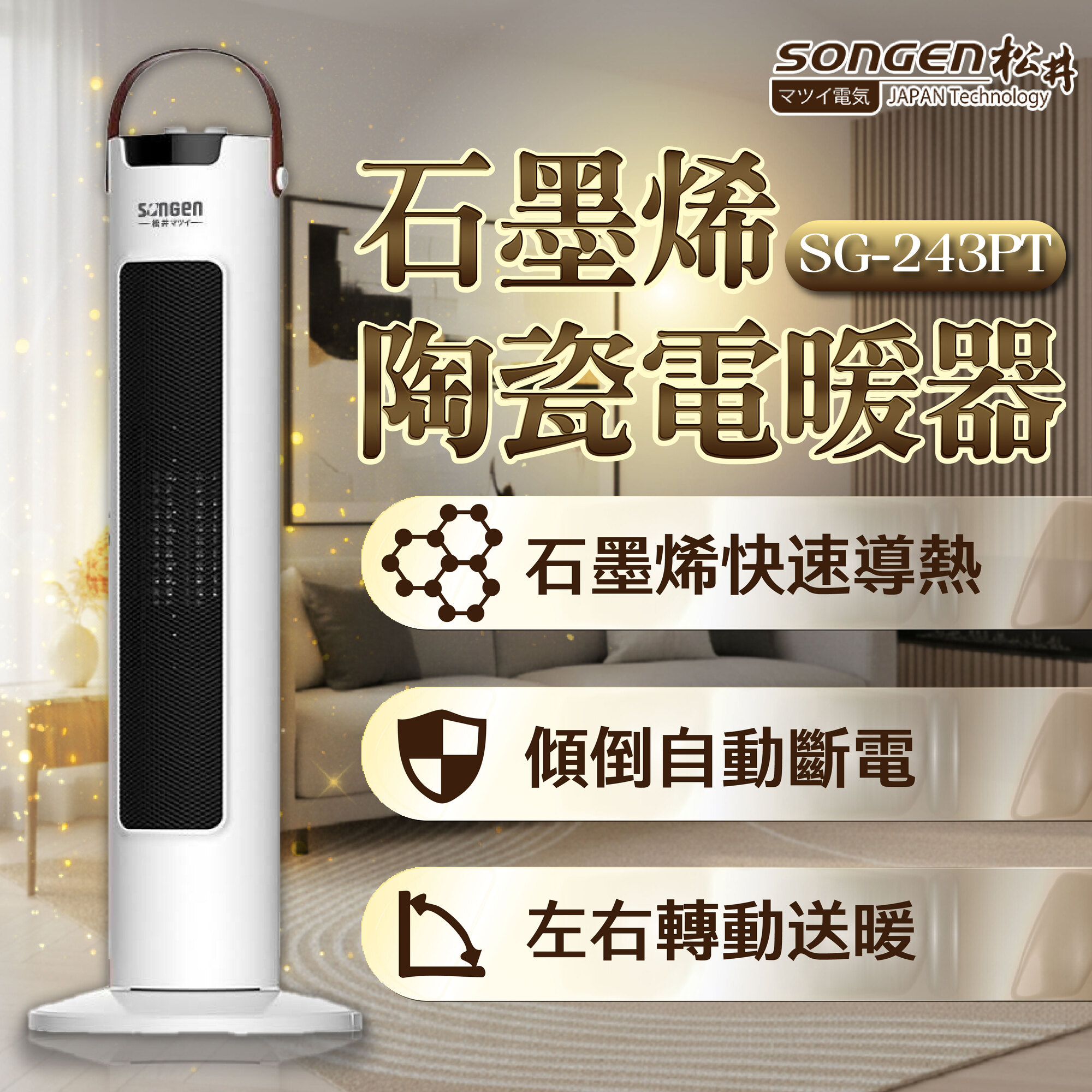 商品名 / | SONGEN松井 直立式石墨烯陶瓷電暖器 暖氣機 電暖爐 SG-243PT |