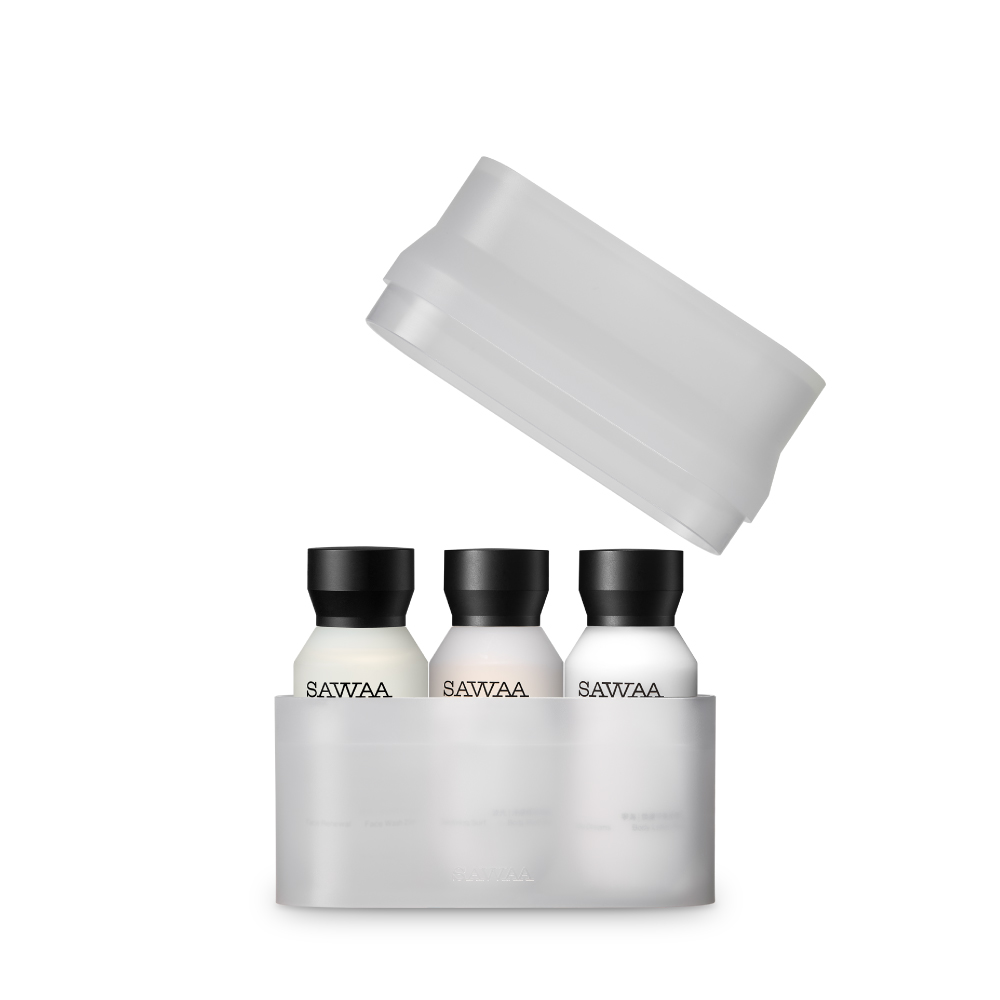 簡介 / | SAWAA日光靜旅身體保養三入旅行組:波光|淨膚酵母沐浴露:有效提升防禦力,沐浴過程中達到舒緩全身肌膚。零度寫作|藻荇舒緩洗面露:選用草本植物精萃、精選低敏感配方, |