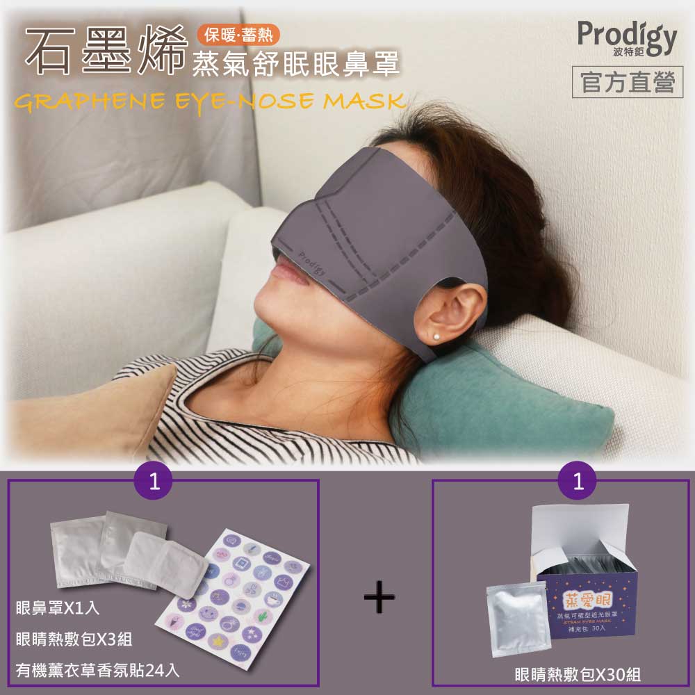 Prodigy波特鉅-石墨烯蒸氣舒眠眼鼻罩組(霧灰紫)+30組熱敷包