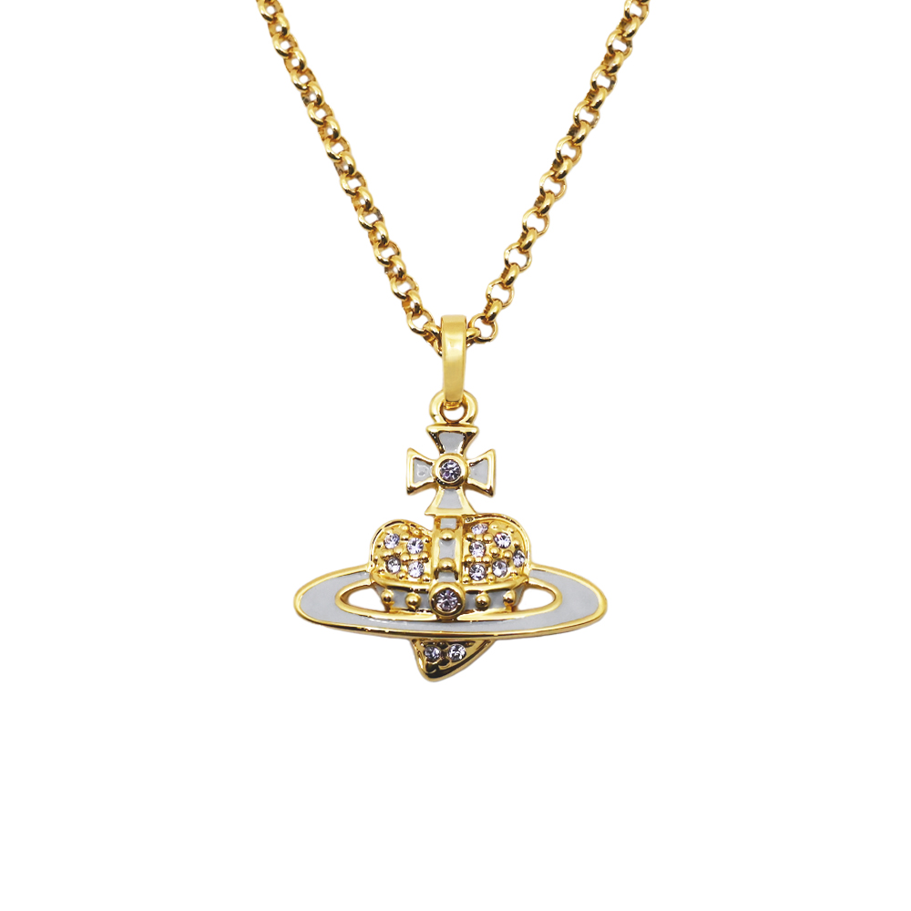 商品名 / | Vivienne Westwood 紫水晶淺灰琺瑯反向愛心行星土星項鍊 金色 平行輸入 |