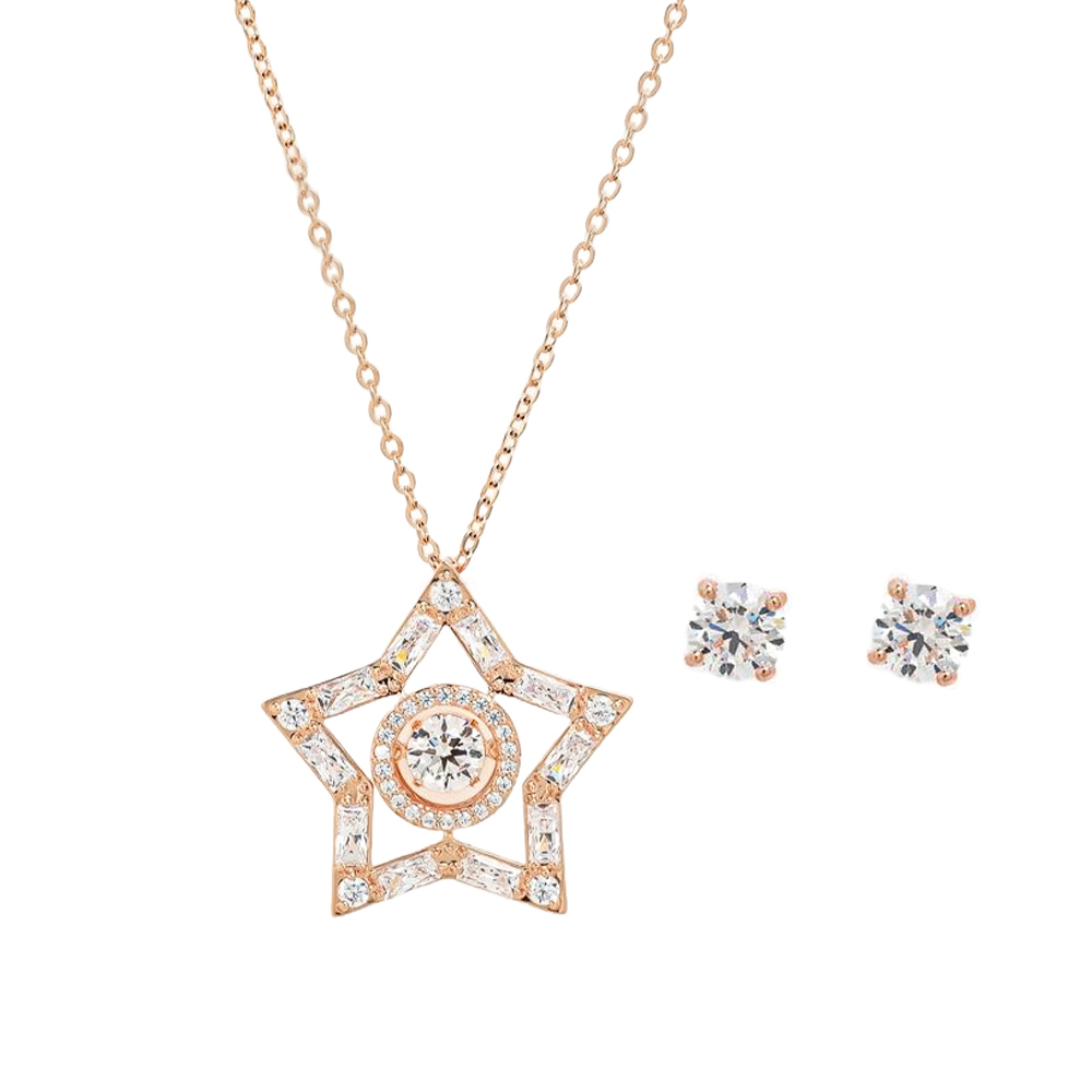 商品名 / | SWAROVSKI 施華洛世奇 Stella 璀璨耀動水晶星星玫瑰金色項鍊耳環套組 平行輸入 |