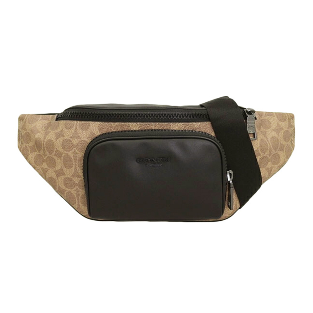 COACH 緹花拼接前拉鍊口袋斜背包胸包 大款 棕褐色 平行輸入