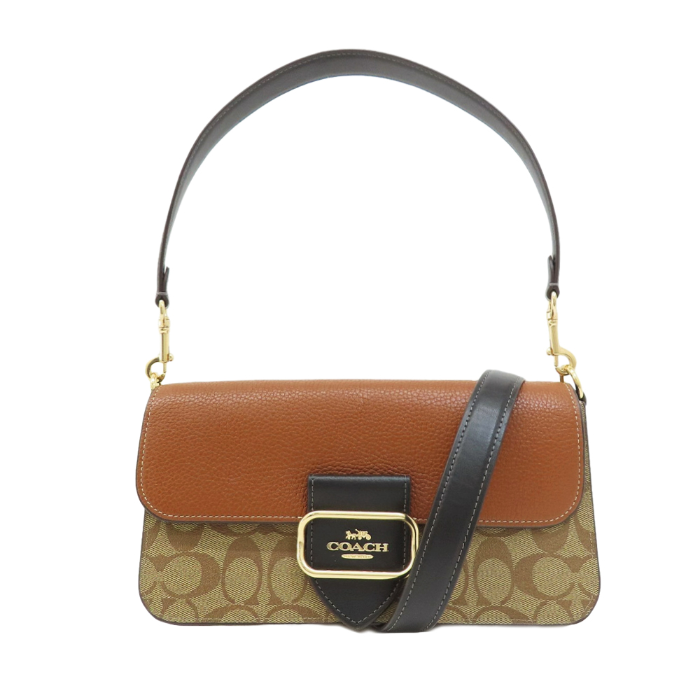 商品名 / | COACH MORGAN 經典緹花翻蓋手提 斜背包 兩用包 卡其x棕色 平行輸入 |