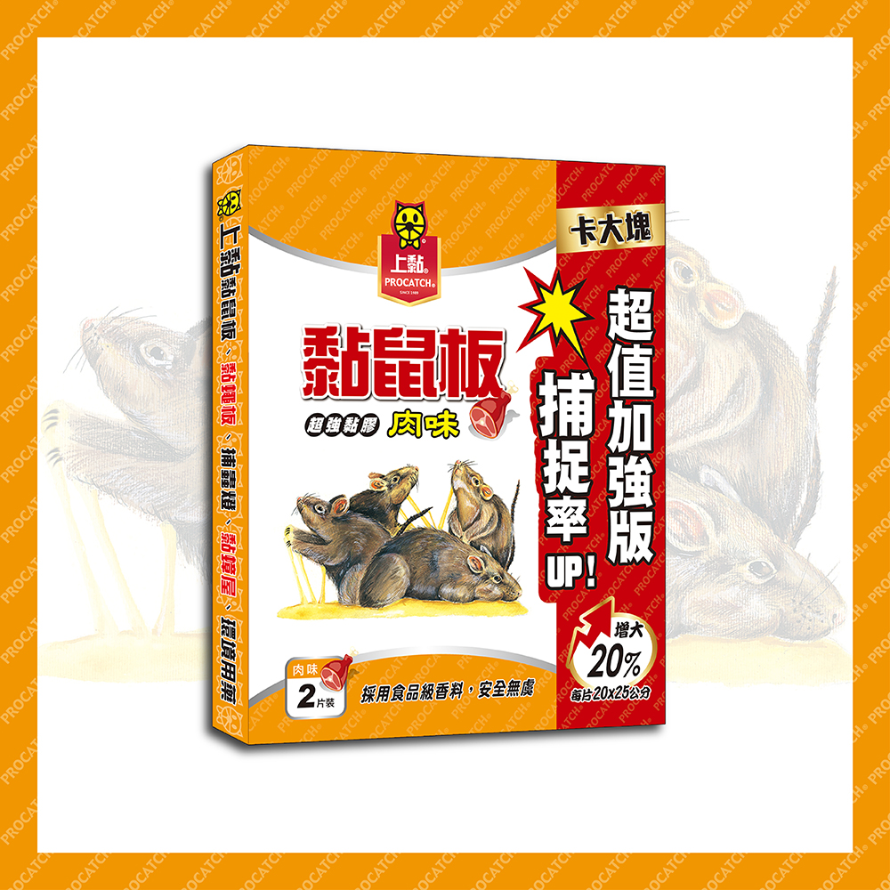 商品描述 | 【上黏】黏鼠板(土豆香味 加味奶香 肉味) 中型2入 盒*3組 肉味:增大20%,捕捉率UP!強力厚膠超強力黏性採用食品級香料,安全無虞不含環境用藥防水消光材質可置於老鼠洞下 |
