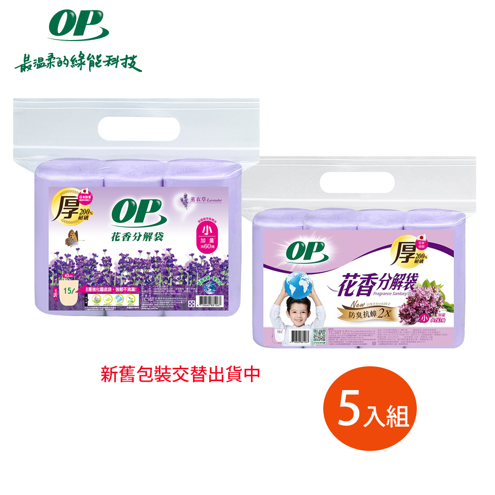 【OP】薰衣草分解袋 清潔袋(垃圾袋) 5包組 小(15L)x5包-新舊包裝隨機出貨
