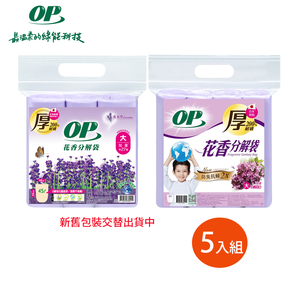 【OP】薰衣草分解袋 清潔袋(垃圾袋) 5包組 大(45L)x5包-新舊包裝隨機出貨