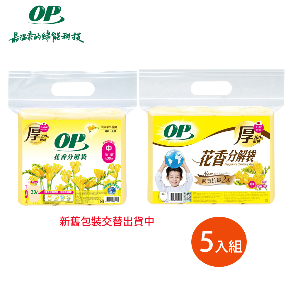 【OP】英國梨小蒼蘭分解袋 清潔袋(垃圾袋) 5包組 中(20L)x5包-新舊包裝隨機出貨
