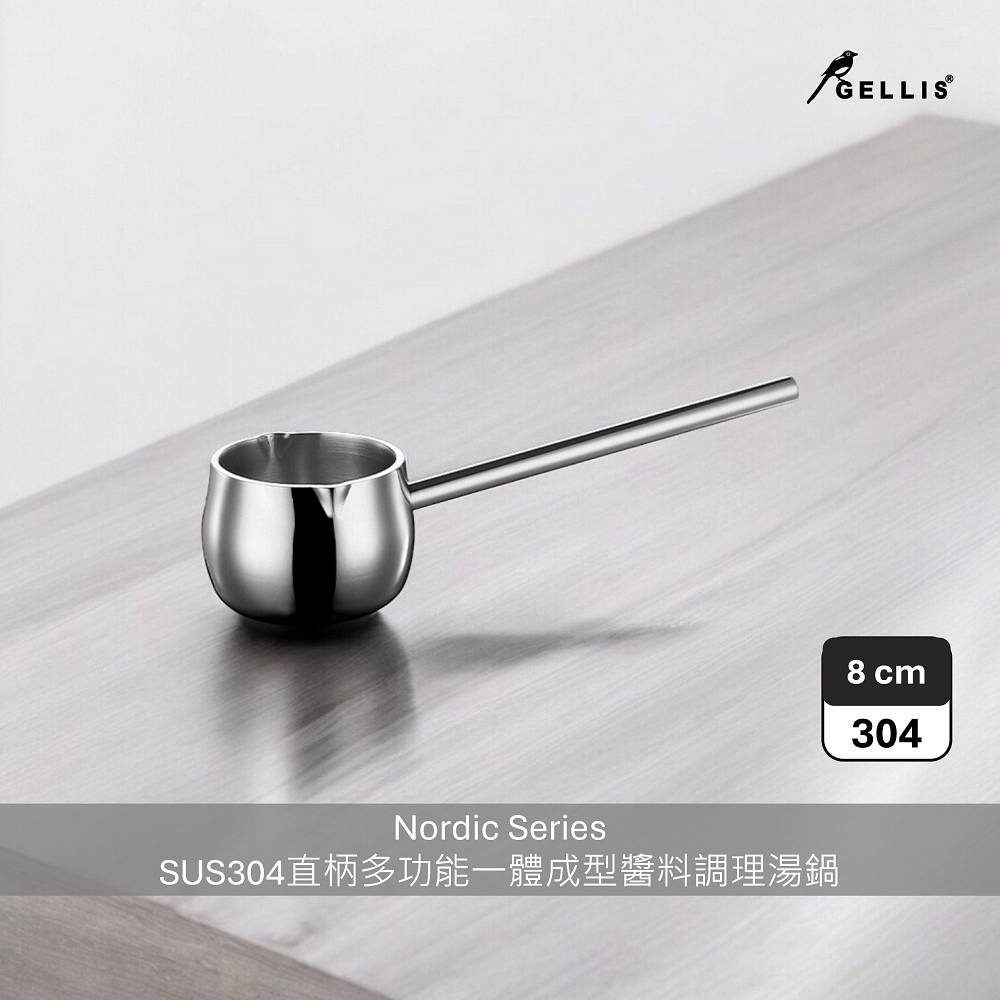 GELLIS鵲利仕8 cm Nordic系列SUS304節能一體成型厚鑄直柄湯鍋醬料鍋調理鍋IH爐可用鍋