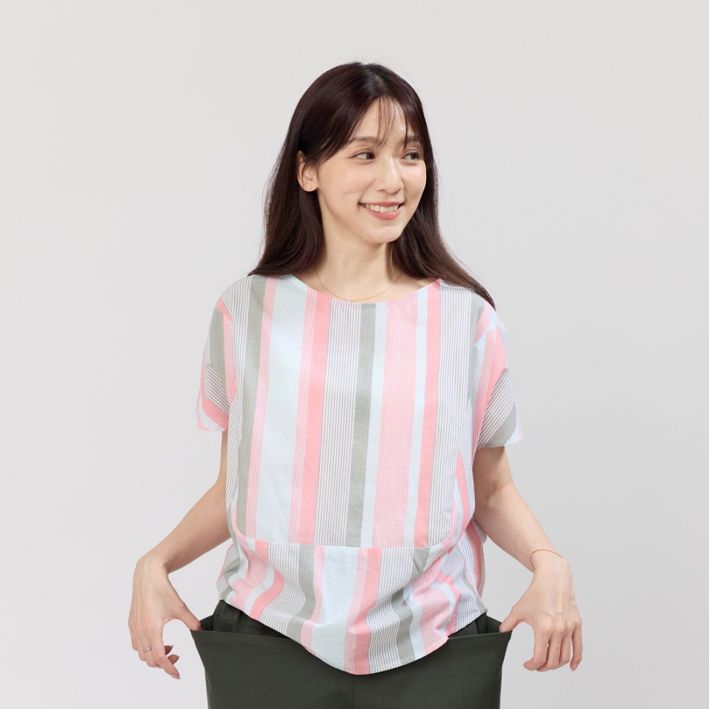 內容簡介 打破了傳統條紋的單調感,這件上衣在柔和的粉綠與粉紅間游走,帶出一種不造作的夏日清新。寬鬆剪裁搭配前片立體方形拼接,讓整體更有層次;棉質面料則給予親膚透氣的穿著體驗,炎炎夏日也能自在活動。| 設計特點 |- 剛剛好的寬鬆度,適合夏日不貼膚的穿著感- 小蓋袖設計,修飾手臂線條- 前片方形剪接設計,增加視覺立體感- 使用100%純棉布料,舒適透氣不悶熱- 台灣設計・小量製作 | 成分 |棉 Cotton 100%| 尺寸 |Free size (平放測量cm)肩寬 x 胸寬 x 衣長74 X 65 X 61| 注意事項 |- 可使用30度冷水機洗- 相似色分開洗滌- 不可長時間浸泡- 不可使用含氯漂白水- 低溫烘乾- 低溫反面整燙| Model參考 |身高:168 cm,50 KG, Free size