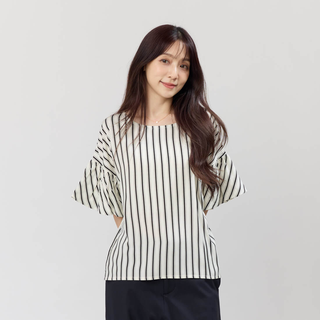 好我 so that's me | Lora荷葉袖圓領寬版上衣 Free 黑白條
