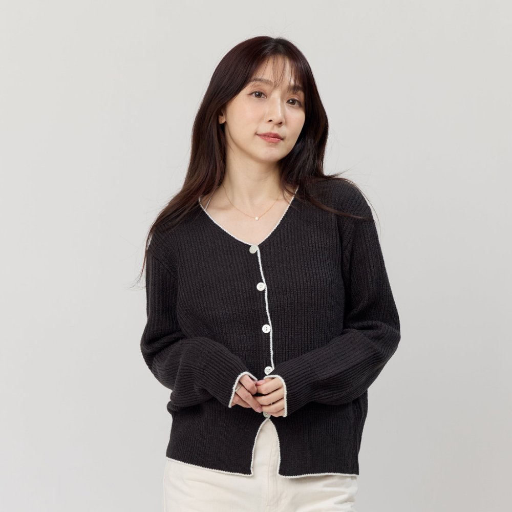 好我 so that's me Cathy手勾邊圓領針織開襟衫外套 深灰 FREE SIZE