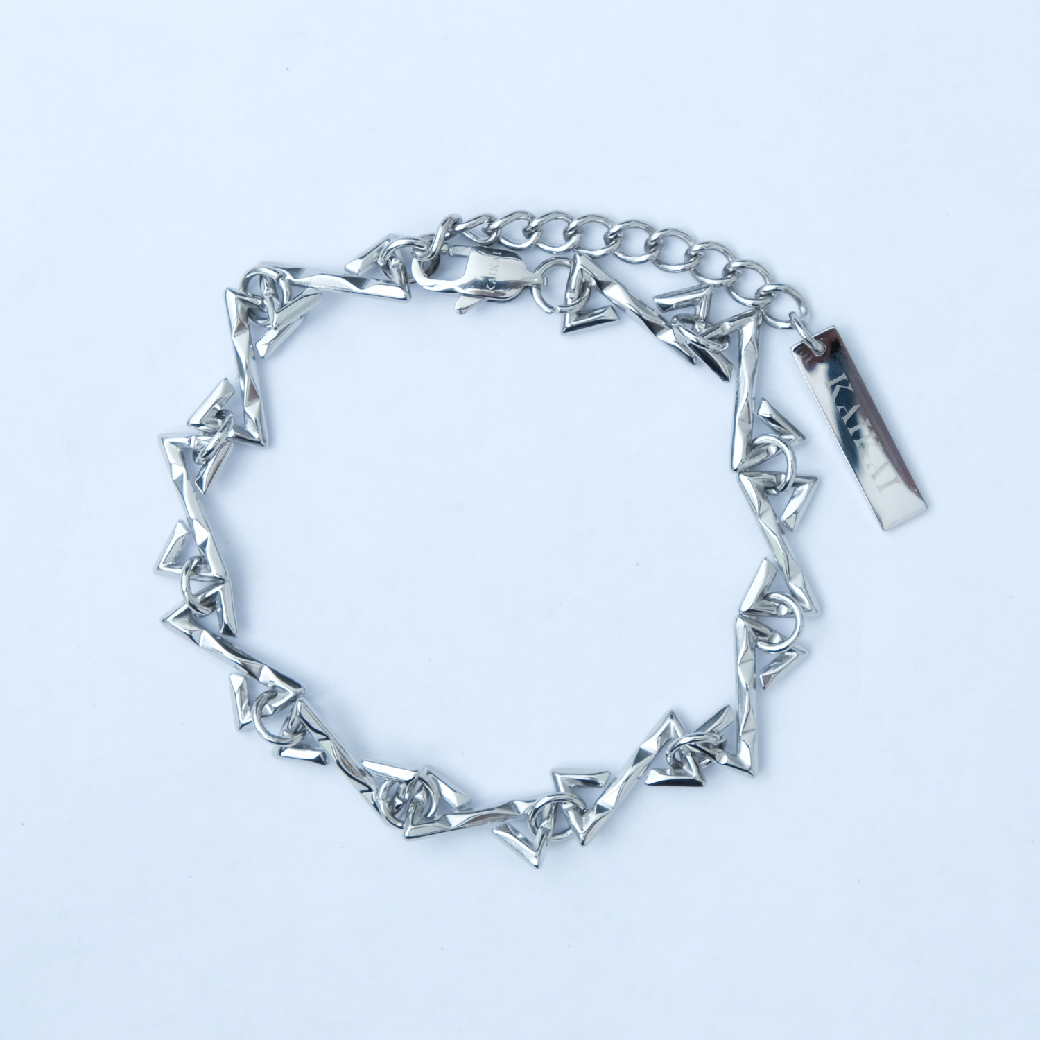 | 商品描述 | KAI KAI "Mirror Reflection" 荊棘Z鈦鋼手鍊:ItemInfo:以Z字母為理念創造出如同荊棘般尖刺的項鍊,尖角部分圓潤弧度打磨不刮皮膚,加上輔助練可自由調整長度。長方形金屬 |