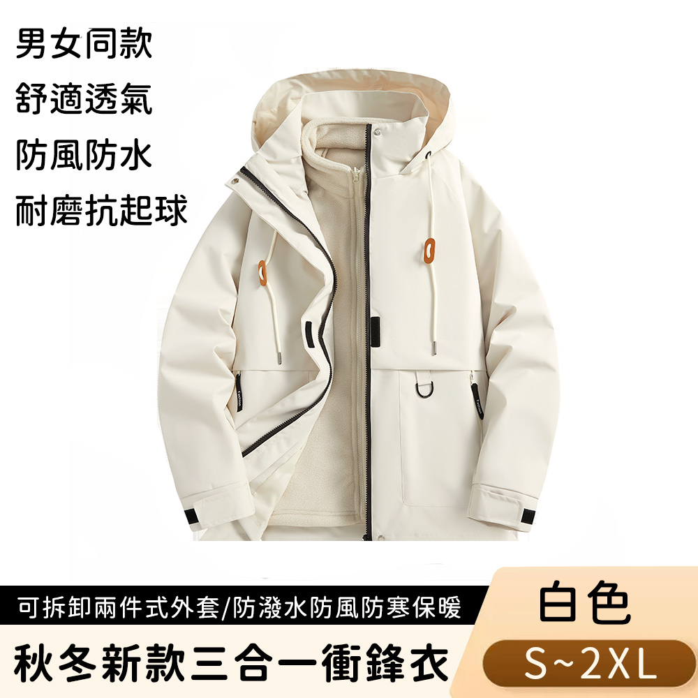 內容簡介 秋冬潮流百搭時尚◆3D立體剪裁 合身百搭◆透氣好 不悶熱貼身◆機能保暖防風防寒品名:【悠行嚴選YUGO】秋冬新款潮流時尚三合一衝鋒衣 可拆卸兩件式外套 防潑水防風防寒保暖機能外套 男女同款材質:100%聚酯纖維套裝組成:兩件式(衝鋒衣、抓絨外套)顏色:黑色、白色、黃色產品尺寸:S、M、L、XL、2XLS:衣長66cm 胸圍59cm 袖長67cm 建議身高155-168cm 建議體重47.5-50cmM:衣長68cm 胸圍61cm 袖長69cm 建議身高168-175cm 建議體重50-60cmL:衣長70cm 胸圍63cm 袖長71cm 建議身高172-180cm 建議體重60-72.5cmXL:衣長72cm 胸圍65cm 袖長73cm 建議身高175-185cm 建議體重72-82.5cm2XL:衣長74cm 胸圍67cm 袖長75cm 建議身高185-190cm 建議體重82.5-92.5cm適用族群:男女同款產地:中國注意事項1.商品到貨享鑒賞期之權益,鑒賞期並非試用期,辦理退貨商品必須是全新狀態且紙箱及商品配件包裝須完整。商品一經使用或組裝後,恕無法辦理退換貨2.網頁商品會因面板螢幕解析度不同,造成圖片顏色呈現略有不同,請以實品顏色為准3.商品為人工丈量略有1~3公分內誤差,請以實品為主。4.商品收到時若有破損或裂痕,請勿使用,並請在24小時內向購買平臺反映商品狀況5.本商品內容不包含擺飾物品6.初次清洗時,深色可能為稍微褪色,屬正常現象。7.請使用中性洗滌劑。8.建議用低溫水(<30度C)手洗,如需機洗請放入洗衣袋。9.請勿與白色物品一同洗滌。10.請勿使用漂白劑清洗。11.請勿使用烘衣機。12.請勿乾洗。13.洗淨脫水後請懸掛在陰涼處晾乾即可。14.請勿曝曬。15.燙整溫度請於150度C以下並墊布熨燙請勿直接熨燙印花部位。16.請勿靠近火源處。