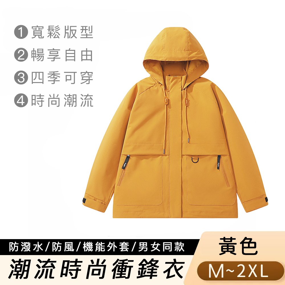 【悠行嚴選YUGO】潮流時尚衝鋒衣 防潑水防風機能外套 男女同款-黃色-L