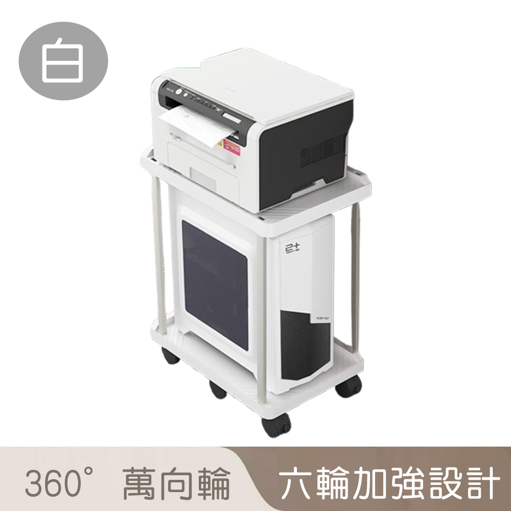 【好拾選物】桌機印表機雙層托架 滑輪主機架 辦公室收納架 白色