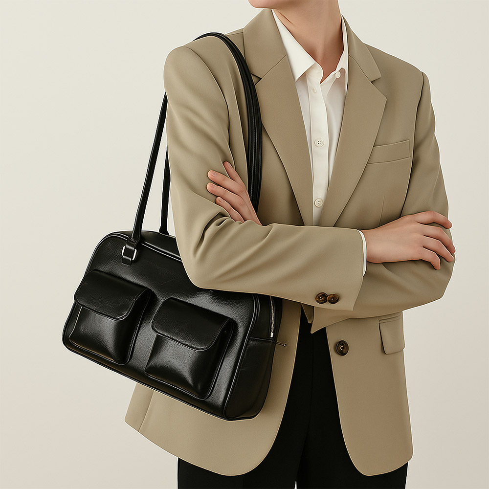【MISUÉ】韓系單肩保齡球包 腋下包 手提包 黑色