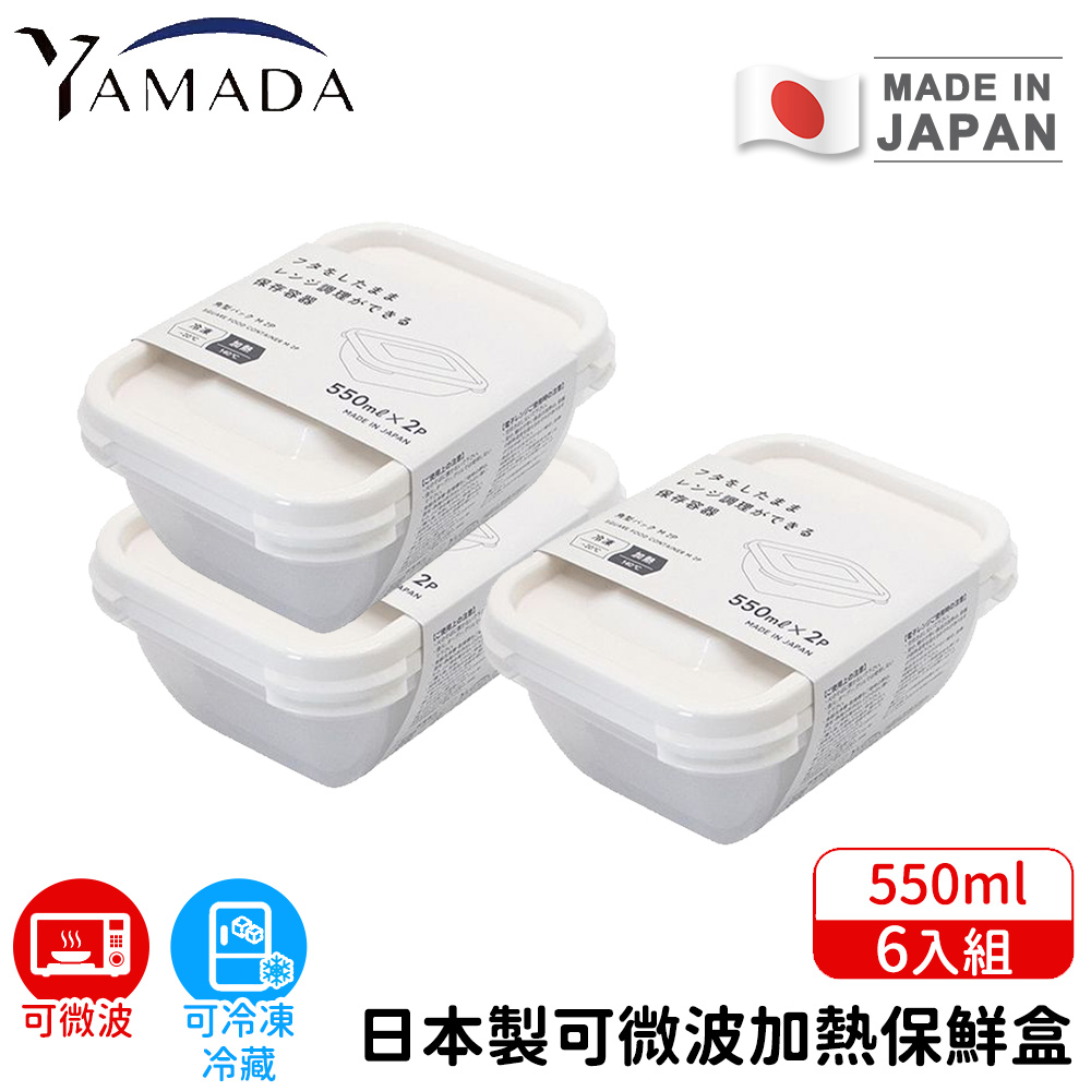 【日本YAMADA】日本製可微波加熱保鮮盒6入組550ml