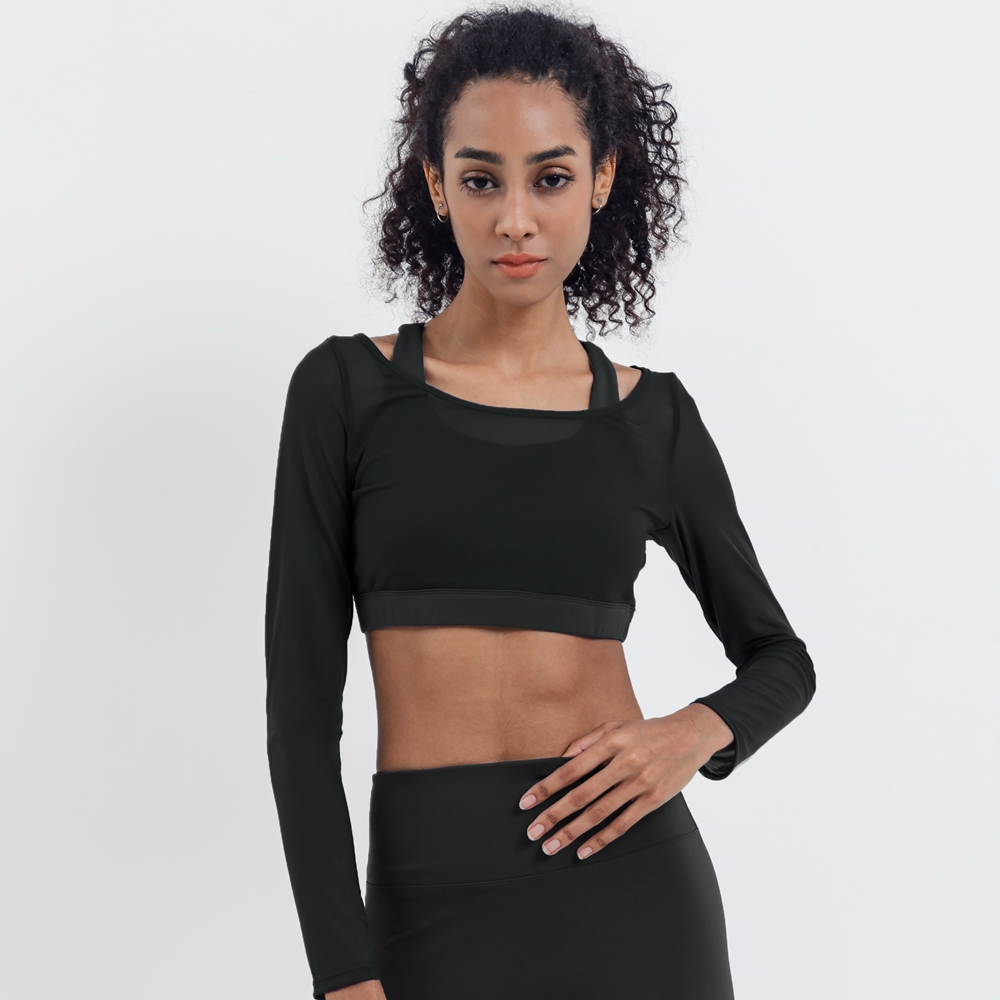 【Mukasa】DURABLE 仙氣透膚美背長袖Bra上衣 - MUK-25034 個性黑 XL