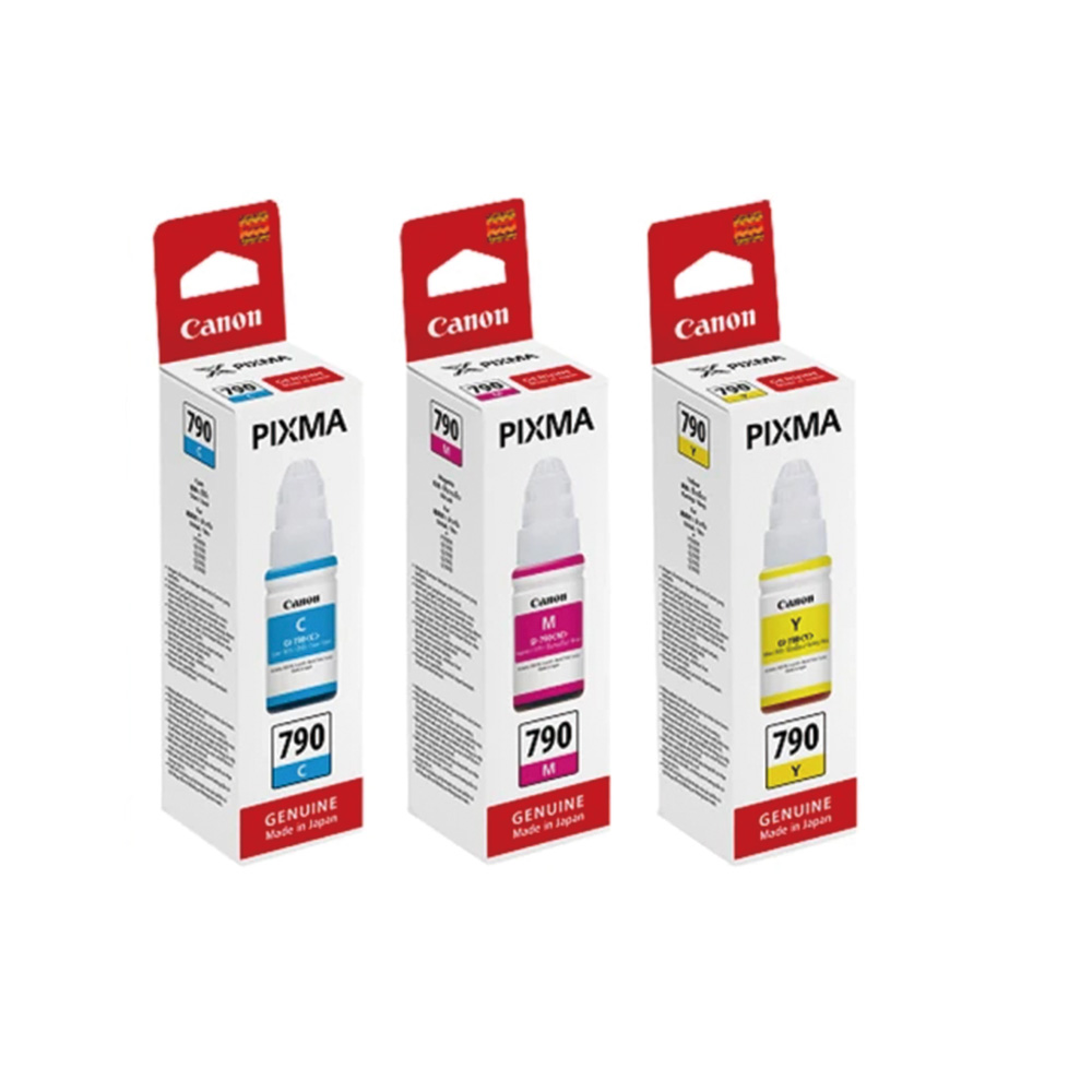 商品名 / | Canon GI-790 CMY 藍 紅 黃 墨水瓶 原廠G系列3彩墨水組(公司貨) |