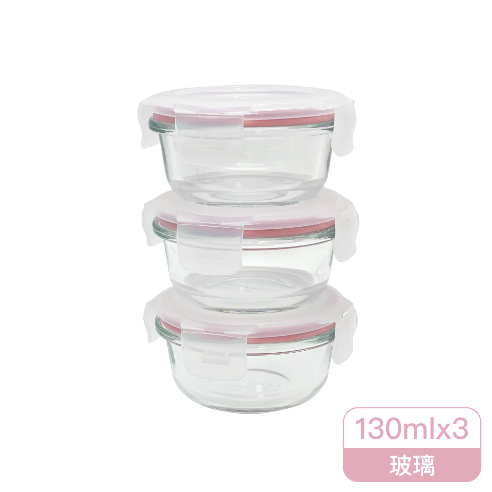 LocknLock樂扣樂扣耐熱玻璃保鮮盒 圓形 130ML 3入組 粉
