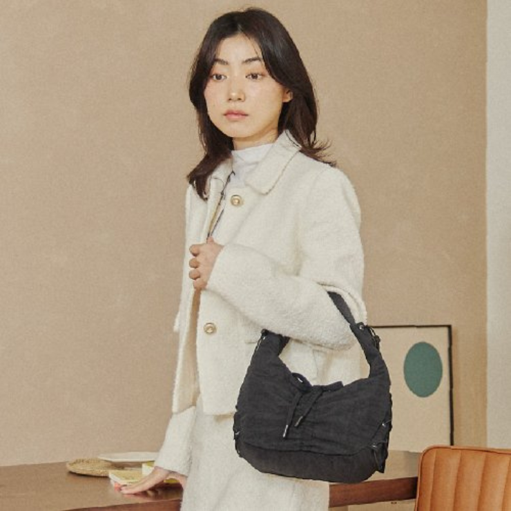 獨特的抽皺設計搭配蝴蝶結裝飾,為包款增添可愛與柔美的氛圍 !