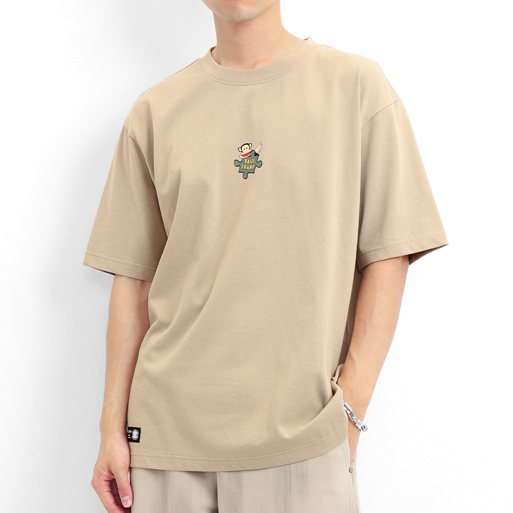 | 商品名 / | 【Paul Frank 大嘴猴】中性落肩短袖T 拼圖猴LOGO簡約設計款 淺卡其 L |