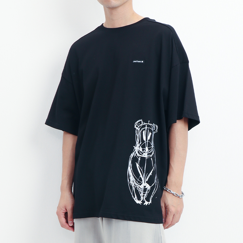 | 簡介 / | 【Paul Frank 大嘴猴】中性 下擺塗鴉 寬鬆短袖T恤 黑 L:▪️此款為寬鬆版型T恤選用100%純棉涼感材質,帶來舒適透氣的穿著感受。▪️整件以插畫線條的WORRYBEAR為基底,結 |