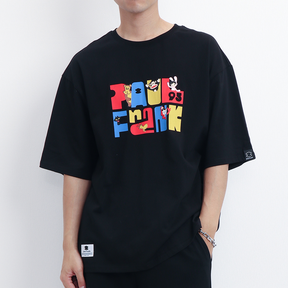 【Paul Frank 大嘴猴】中性印花字母 落肩 短袖T恤 黑 L