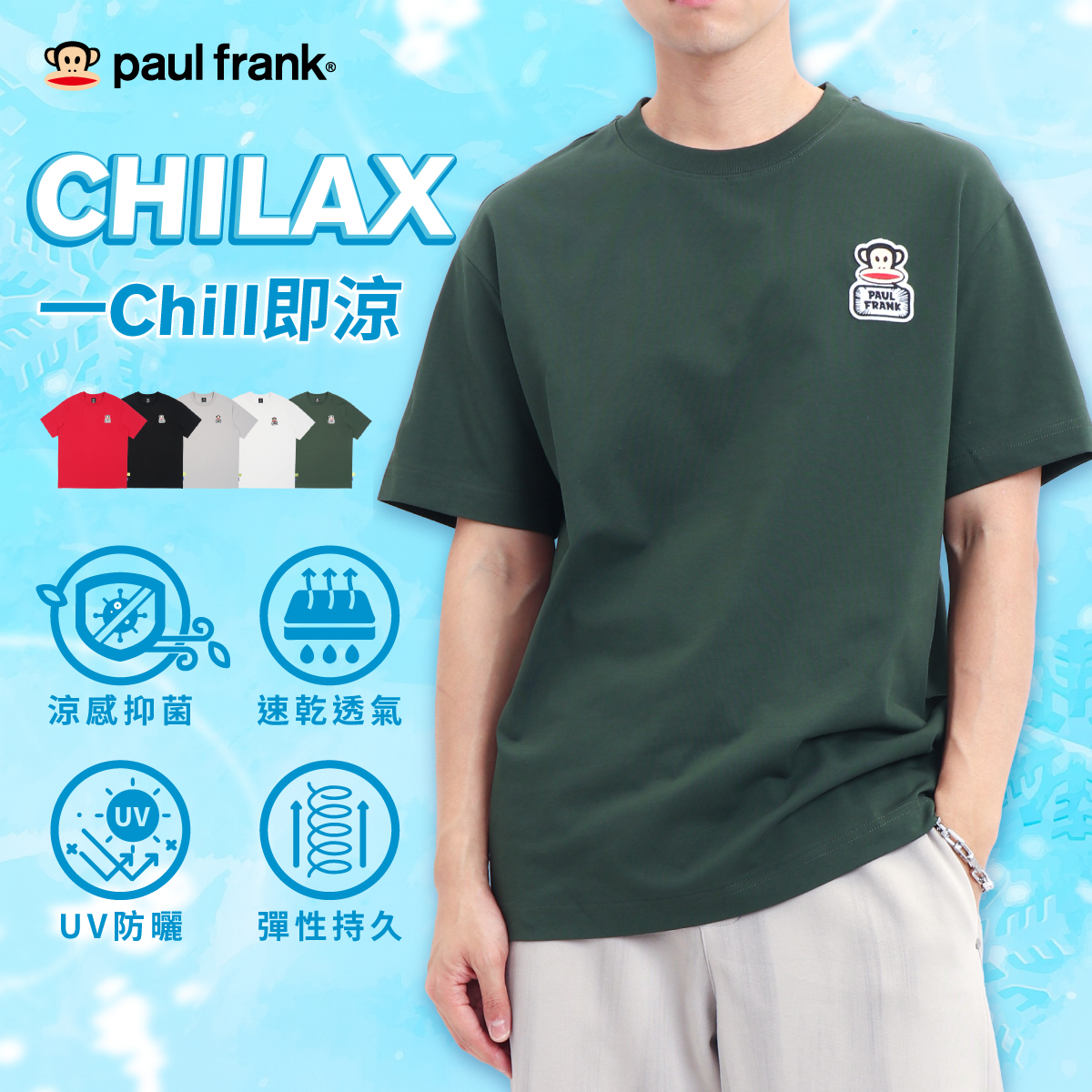 【Paul Frank 大嘴猴】CHILAX科技涼感 胸前小LOGO 中性短袖T恤 中綠 S
