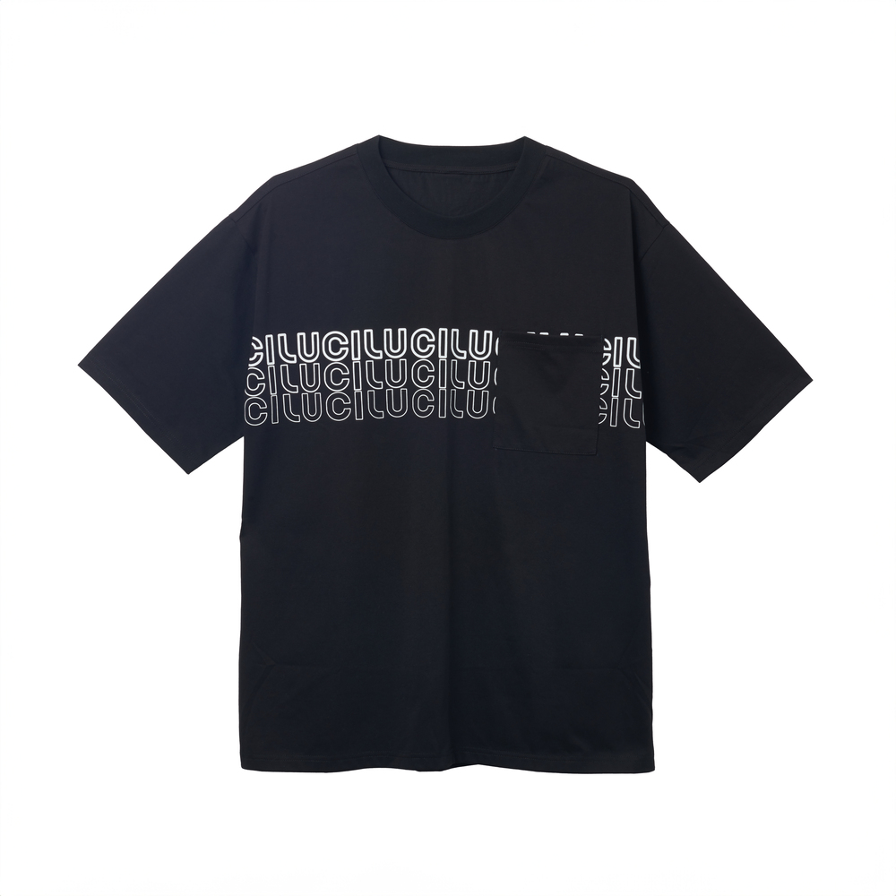 【CCILU】中性 口袋印花短袖上衣 黑 L