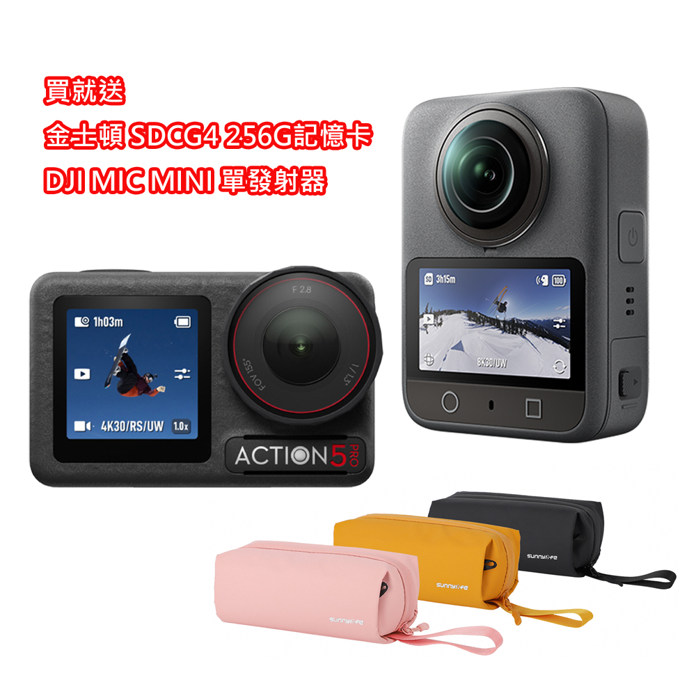內容簡介 本賣場組合:DJI OSMO 360 標準套裝 公司貨*1DJI Osmo Action 5 Pro 暢拍套裝 公司貨*1DJI MIC MINI 單發射器(碳素黑) 公司貨*1金士頓 SDCG4 256G記憶卡*1運動相機通用收納軟包(顏色隨機出貨)*1購買需知:1.以上規格,如有差異,依原廠官網公告為準。2.收到商品後,請仔細確認商品正確、外觀可接受、確定要購買,再拆封 開機使用,以免影響您的權利。退貨注意事項:1.退貨的商品必須為全新未拆封狀態且外包裝完整包裝 。2.商品一經連網 插卡 WIFI 藍牙 配對使用,導致原廠保固期計算開始,不得無條件辦理退貨。3.商品只要連接網路,會自動註冊,保固就開始計算,且無法註銷,等同於商品價值已受損,若退貨我方須收取30%之價值損失。4.如為未開通但已拆封使包裝無法復原,須收取10%之價值損失。5.依據民法第259條第六項:應返還之物有毀損、滅失或因其他事由,致不能返還者,應償還其價額。★本商品為非破壞性包裝,請確定購買後再拆封。鑑賞期非適用期,除新品瑕疵,否則一經使用,恕無法接受退貨服務。退貨時請保持包裝及內容物完整無缺件,將視情況酌收整新包材費用。如商品外盒包裝因拆封造成嚴重損毀,本公司保留拒絕退貨之權利。