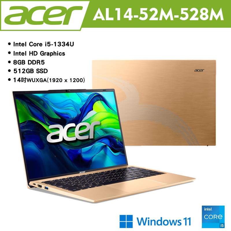 內容簡介 型號:AL14-52M-528M處理器:Intel Core i5-1334ULCD 尺寸:14.0" IPS 16:10 霧面 LED背光 WUXGA 1920 x 1200 NTSC 45% 300 nits顯示晶片:Intel HD Graphics記憶體1:8GB DDR5總插槽數量 總容量:2 32GB儲存:512GB PCIe Gen4 SSD作業系統:Windows 11 Home光碟機:無Webcam 前:2M FHD Camera無線網路:Intel Wireless Wi-Fi 6 AX201藍牙:Bluetooth 5.1區域網路 RJ45:無Kensington lock slot:有尺寸(mm):313.3 (W) x 218 (D) x 16.9 (H) mm重量:1.5 kg電源變壓器:65W電池:58Wh batteryInput Output:1*(USB 3.2 Gen 2)(DisplayPort)3*(USB 3.2 Gen 1)HDMI 1.4microSD Card reader可外接螢幕數量:2指紋辨識:NTPM:N保固:台灣2年包包滑鼠:無內附備註:以上規格僅供參考,如有任何問題,請依原廠公告為主。※本賣場產品圖、產品功能、商品規格僅供參考,實品皆依原廠出貨為準,若有更改恕不另行通知。《拆封即代表同意以下注意事項,敬請詳閱》1.3C相關商品,為一次性包裝商品,不可拆封或試用,請務必確認有購買需求後再拆封。2.鑑賞(猶豫)期非試用期,辦理退換貨商品必須是完好狀態且需加裝外箱包裝,交付給前往取件的物流公司;請勿於商品原廠外盒上直接黏貼任何單據或書寫文字,否則將會影響退貨權限,此外也可能依照損毀程度扣除為回復原狀所必要的費用。3.客退回的商品必須是全新的狀態且包裝完整(含主機、包裝內外盒(含主機包裝膜及配件包裝膜)、配件、贈品、原廠內容物不得有人為損傷),切勿使用密碼鎖機功能、軟體升級、包膜、IMEI碼上網註冊、刷機及其他會破壞原廠軟體的操作,如有上述情形發生將不受理退換貨。★如商品有毀損或缺少,欲辦理退 換貨須酌收取15%~30%價值損失費用(詳細費用以檢測結果為準)★切勿破壞原廠外盒包裝,所贈予贈品請於鑑賞期過後再拆封使用,否則將無法接受退換貨。★電腦軟體屬於智慧財產保護權之一,均亨有相關法律權利,若不確定是否需要,請勿啟用,軟體啟用將無法退貨!★筆記型電腦 桌機 手機 平板等主機商品貨附贈之相關軟體、活動登入禮,鑑賞期內切勿上網註冊 (一經註冊恕無法接受退貨)。