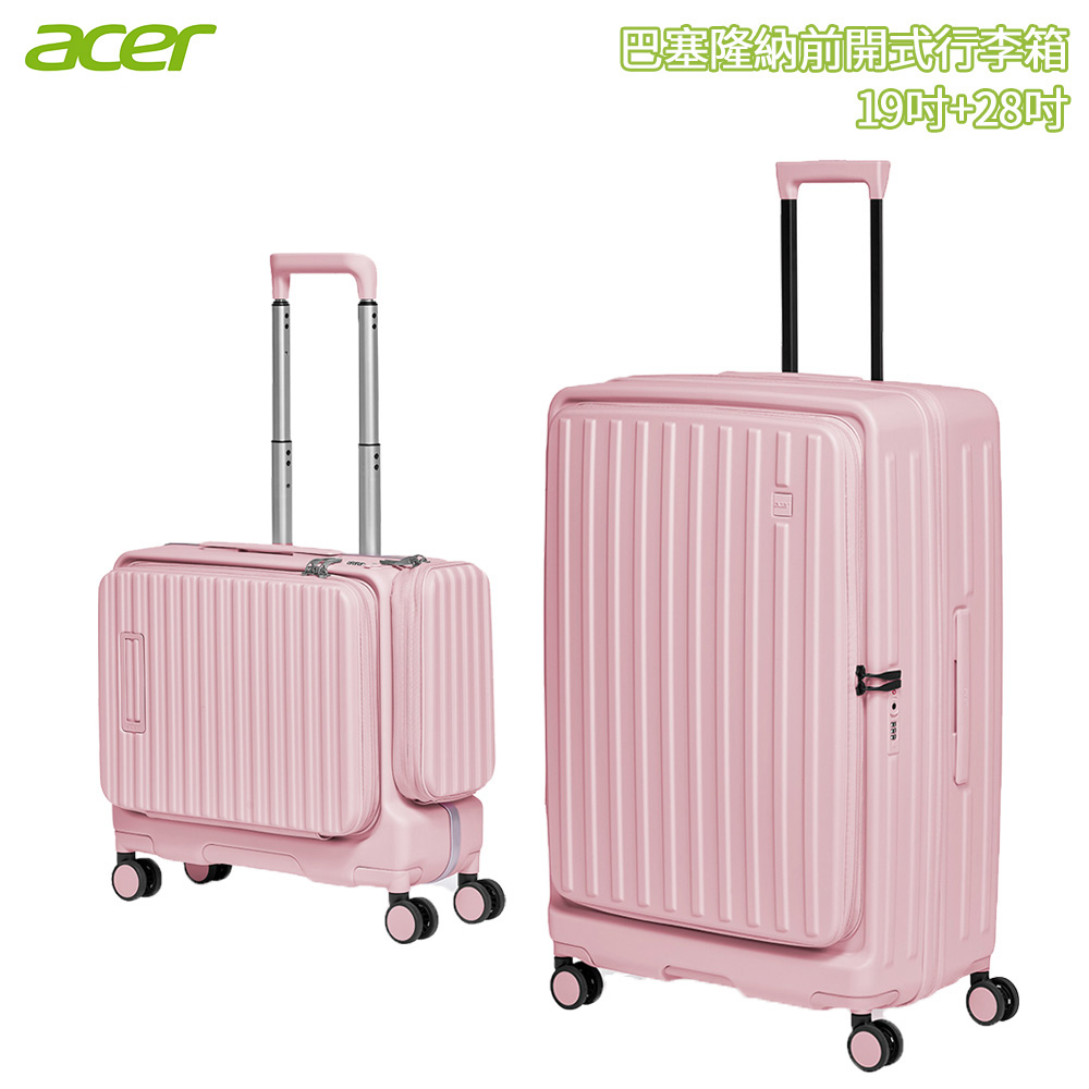 Acer 宏碁 巴塞隆納前開式行李箱 二件組 19吋夢幻粉+28吋夢幻粉
