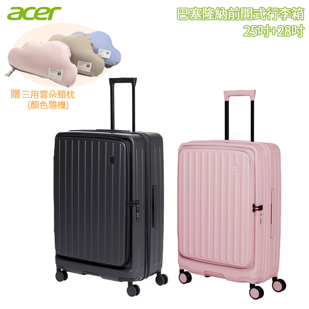 Acer 宏碁 巴塞隆納前開式行李箱 二件組 25吋夢幻粉+28吋夜幕黑