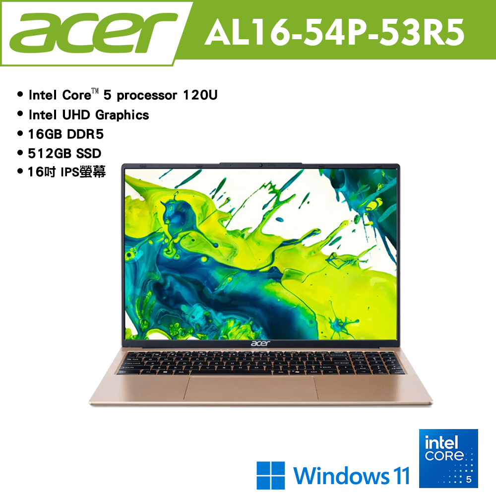 內容簡介 型號: AL16-54P-53R5處理器:Intel☆ Core™ 5 processor 120ULCD 尺寸:16" 16:10 IPS 霧面 LED背光解析度:WUXGA 1920 x 1200顯示晶片:Intel☆ UHD Graphics記憶體1:16GB DDR5總插槽數量 總容量:2 32GB儲存:512GB PCIe Gen4 SSD作業系統:Windows 11 Home光碟機:無Webcam 前:2M FHD Camera無線網路:Intel Wireless Wi-Fi 6 AX201藍牙:Bluetooth 5.1區域網路 RJ45:有Kensington lock slot:有尺寸(mm):357.8 (W) x 244.8 (D) x 18.9 18.9 (H) mm重量:1.53 kg電源變壓器:65W TypeC電池:58Wh batteryCard Reader:Y(microSD Card reader)Input Output:1(USB 3.2 Gen 1)(DisplayPort)2(USB 3.2 Gen 1)HDMI 1.4可外接螢幕數量:2指紋辨識:NTPM:N保固:台灣2年包包滑鼠:不附鼠包備註:以上規格僅供參考,如有任何問題,請依原廠公告為主。※本賣場產品圖、產品功能、商品規格僅供參考,實品皆依原廠出貨為準,若有更改恕不另行通知。《拆封即代表同意以下注意事項,敬請詳閱》1.3C相關商品,為一次性包裝商品,不可拆封或試用,請務必確認有購買需求後再拆封。2.鑑賞(猶豫)期非試用期,辦理退換貨商品必須是完好狀態且需加裝外箱包裝,交付給前往取件的物流公司;請勿於商品原廠外盒上直接黏貼任何單據或書寫文字,否則將會影響退貨權限,此外也可能依照損毀程度扣除為回復原狀所必要的費用。3.客退回的商品必須是全新的狀態且包裝完整(含主機、包裝內外盒(含主機包裝膜及配件包裝膜)、配件、贈品、原廠內容物不得有人為損傷),切勿使用密碼鎖機功能、軟體升級、包膜、IMEI碼上網註冊、刷機及其他會破壞原廠軟體的操作,如有上述情形發生將不受理退換貨。★如商品有毀損或缺少,欲辦理退 換貨須酌收取15%~30%價值損失費用(詳細費用以檢測結果為準)★切勿破壞原廠外盒包裝,所贈予贈品請於鑑賞期過後再拆封使用,否則將無法接受退換貨。★電腦軟體屬於智慧財產保護權之一,均亨有相關法律權利,若不確定是否需要,請勿啟用,軟體啟用將無法退貨!★筆記型電腦 桌機 手機 平板等主機商品貨附贈之相關軟體、活動登入禮,鑑賞期內切勿上網註冊 (一經註冊恕無法接受退貨)。