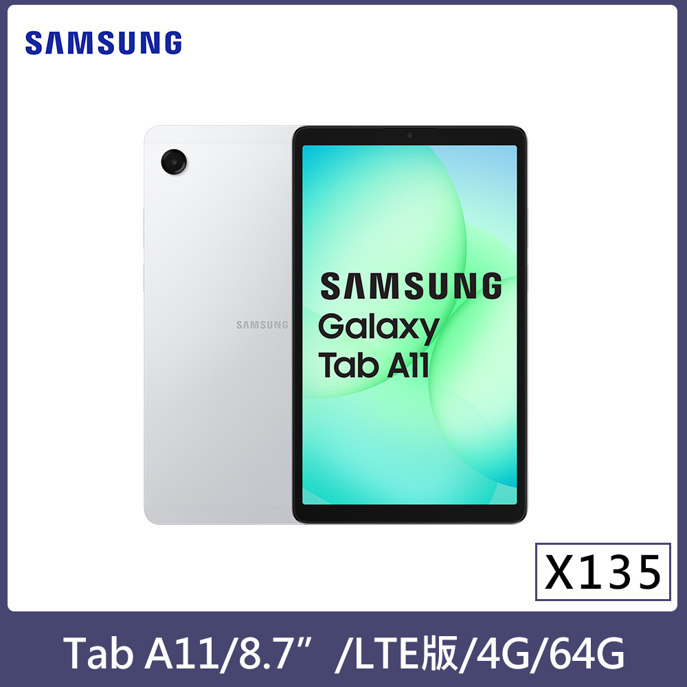 內容簡介 Galaxy Tab A11 LTE核心處理器核心處理器時脈2.2GHz, 2GHz 核心處理器類型八核心處理器顯示螢幕主螢幕尺寸220.5mm (8.7" 將螢幕四邊延伸為一完整矩形之測量結果) 219.6mm (8.6" 考量圓角設計之測量結果) 主螢幕解析度1340 x 800 (WXGA+) 主螢幕技術TFT 主螢幕色彩16M相機主相機解析度800萬畫素 主相機 - 自動對焦有 前置相機解析度500萬畫素 主相機閃光燈無 影片錄製解析度FHD (1920 x 1080) @30fps儲存空間 記憶體記憶體 (GB)4GB 儲存空間 (GB)64GB* 作業系統及預設應用程式將占用部分儲存空間,實際用戶可使用儲存空間將少於規格所標示的儲存空間容量。* 作業系統或軟體版本的更新可能會導致用戶可使用儲存空間有所改變。 可用儲存空間* (GB)44.6 支援外接儲存空間最高支援至 2TB MicroSD網路與無線連結性SIM 卡單 SIM 卡 SIM 卡類型SIM 1 + MicroSD 2G GSM 頻率GSM850, GSM900, DCS1800, PCS1900 3G 頻率B1(2100), B2(1900), B4(AWS), B5(850), B8(900) 4G FDD LTE 頻率B1(2100), B2(1900), B3(1800), B4(AWS), B5(850), B7(2600), B8(900), B12(700), B17(700), B20(800), B26(850), B28(700), B66(AWS-3) 4G TDD LTE 頻率B38(2600), B40(2300), B41(2500)連結性USB 版本USB 2.0 定位系統GPS, Glonass, Beidou, Galileo, QZSS 耳機孔3.5mm Stereo MHL否 Wi-Fi802.11a b g n ac 2.4GHz+5GHz, VHT80 Wi-Fi Direct有 藍牙版本Bluetooth v5.3 NFC無 藍牙規範A2DP, AVRCP, DI, HFP, HID, HOGP, HSP, MAP, OPP, PAN, PBAP PC 同步應用程式Smart Switch (PC 版)作業系統Android感應器加速度計, 數位指南針, 光感應器, 趨近感應器實體規格尺寸 (長x寬x高,mm)211.0 x 124.7 x 8.0 重量 (g)337電池電池容量 (實際電力表現依個人使用習慣有所差異) (mAh,典型值)5100影音影片播放格式MP4, M4V, 3GP, 3G2, AVI, FLV, MKV, WEBM 影片播放解析度FHD (1920 x 1080) @60fps 音樂播放格式MP3, M4A, 3GA, AAC, OGG, OGA, WAV, AMR, AWB, FLAC, MID, MIDI, XMF, MXMF, IMY, RTTTL, RTX, OTA服務與應用程式支援 GearGalaxy Buds Core, Galaxy Buds3 Pro, Galaxy Buds2 Pro, Galaxy Buds Pro, Galaxy Buds Live, Galaxy Buds+, Galaxy Buds3, Galaxy Buds2, Galaxy Buds, Galaxy Buds FE 支援 SmartThings有* 作業系統及預設應用程式將占用部分儲存空間,實際用戶可使用儲存空間將少於規格所標示的記憶體容量。作業系統或軟體版本的更新可能會導致用戶可使用儲存空間有所改變。《以下注意事項請先詳閱》鑑賞期(非試用期)尚未決定購買前,請保持商品完整,請消費者開箱過程全程攝影,拆封請用刀片小心割開封口膠帶,切勿破壞原廠外盒包裝。退換貨的商品必須為全新狀態且包裝完整(包含主機、原廠內外盒不得刮傷破損,配件及隨附文件與贈品不得缺件與使用)商品勿使用密碼鎖機、軟體升級、包膜、IMEI碼上網註冊、刷機及其他破壞原廠軟體的操作,依據民法第259條第6項:應返還之物有毀損、滅失或因其他事由,致不能返還者,應償還其價額。如未達上述之規範,我方將收取15%之價值損失,謝謝。