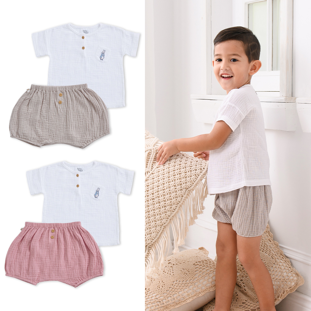 【奇哥】比得兔 嬰幼童裝 彩色比得純棉紗布短袖套裝 短袖上衣 短褲(1-5歲) 星空灰 2歲