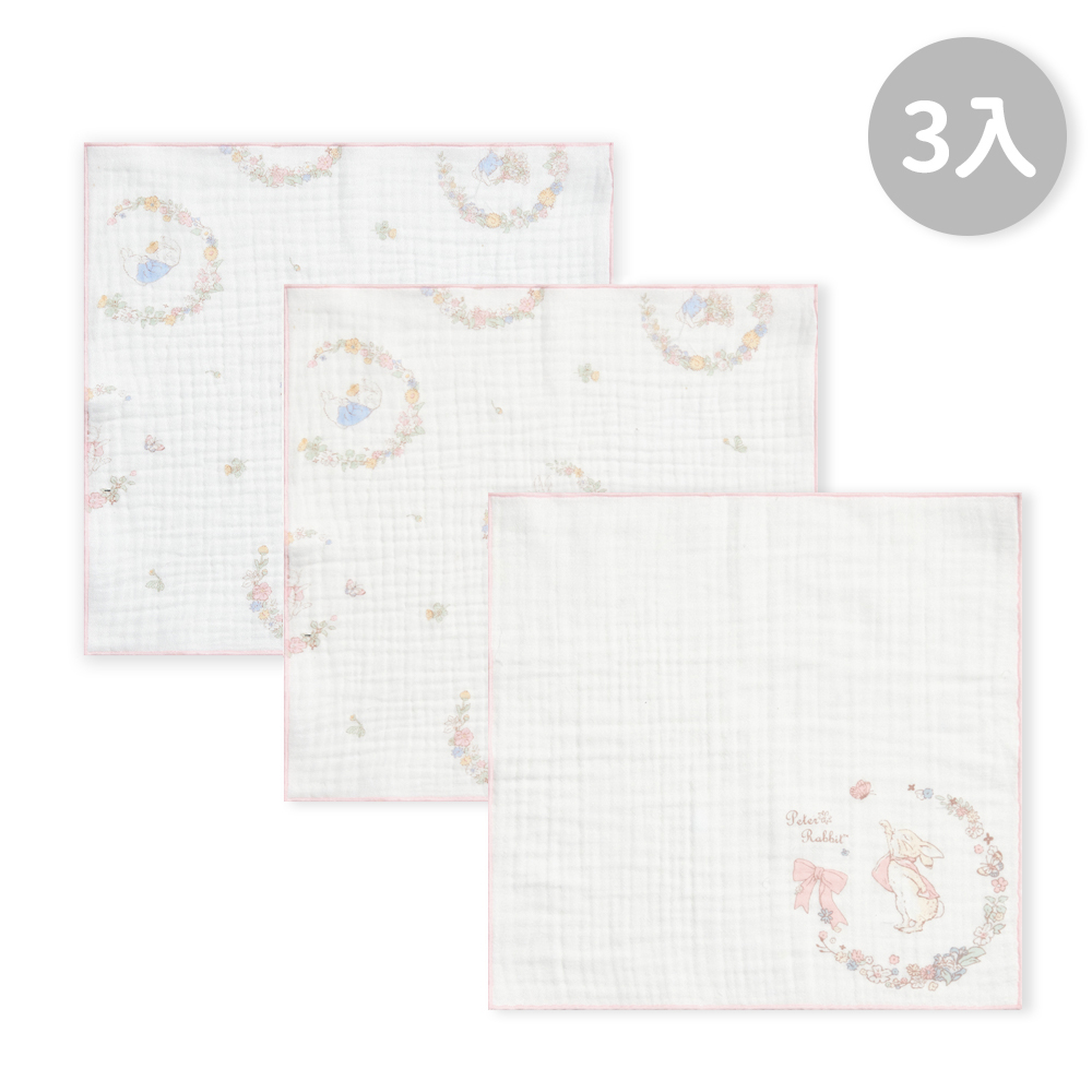 【奇哥】星空比得兔三層紗布方巾3入 30x30cm 花冠比得