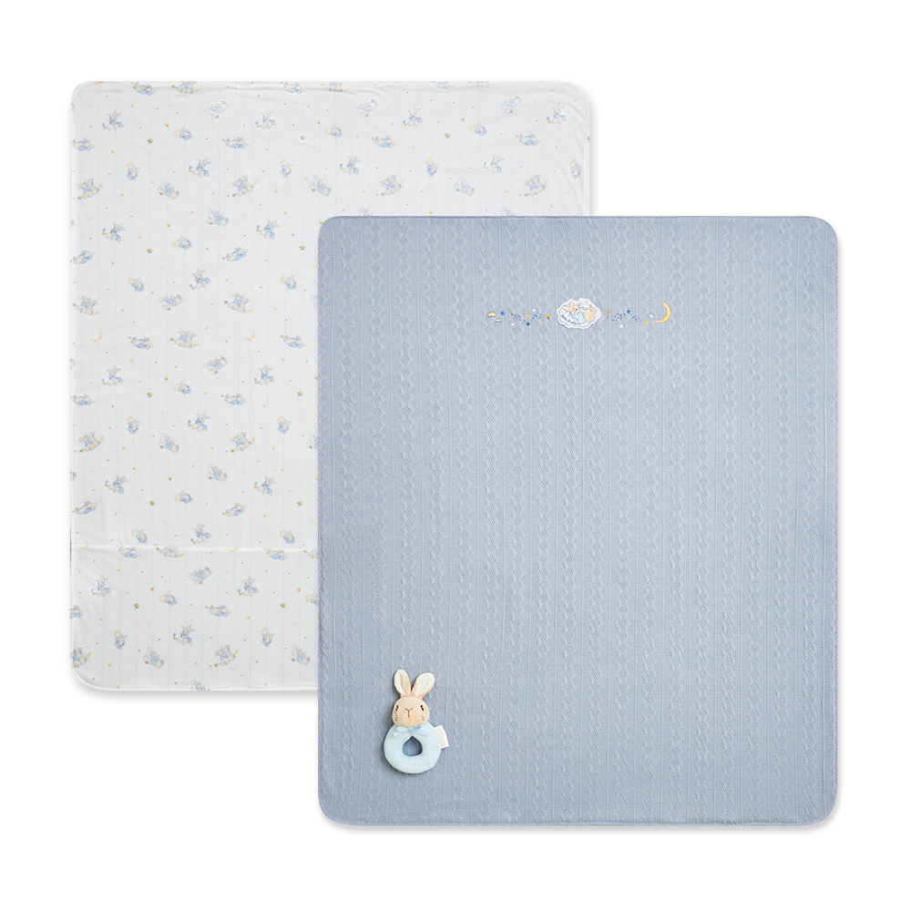 【奇哥】四季比得兔 麻花針織四季被禮盒-天絲棉 75x90cm 淺灰藍色