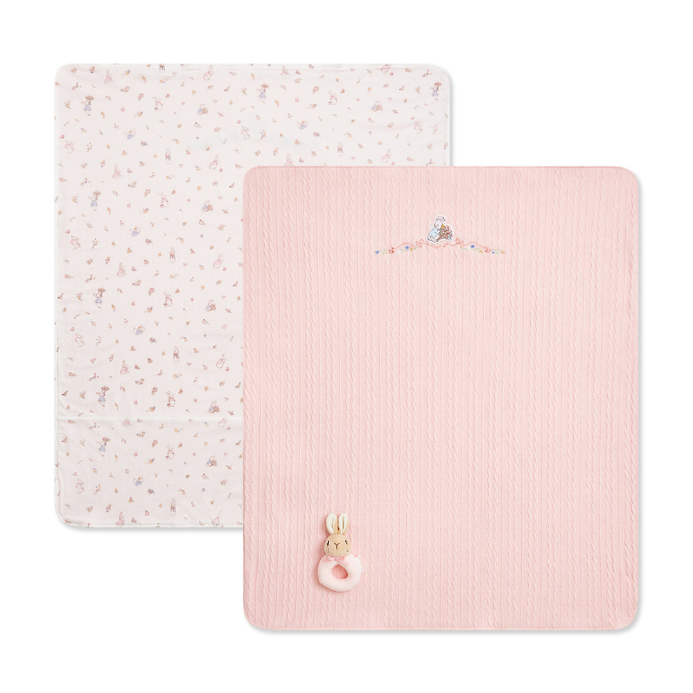 商品名 / | 【奇哥】四季比得兔 麻花針織四季被禮盒-天絲棉 75x90cm 杏粉色 |