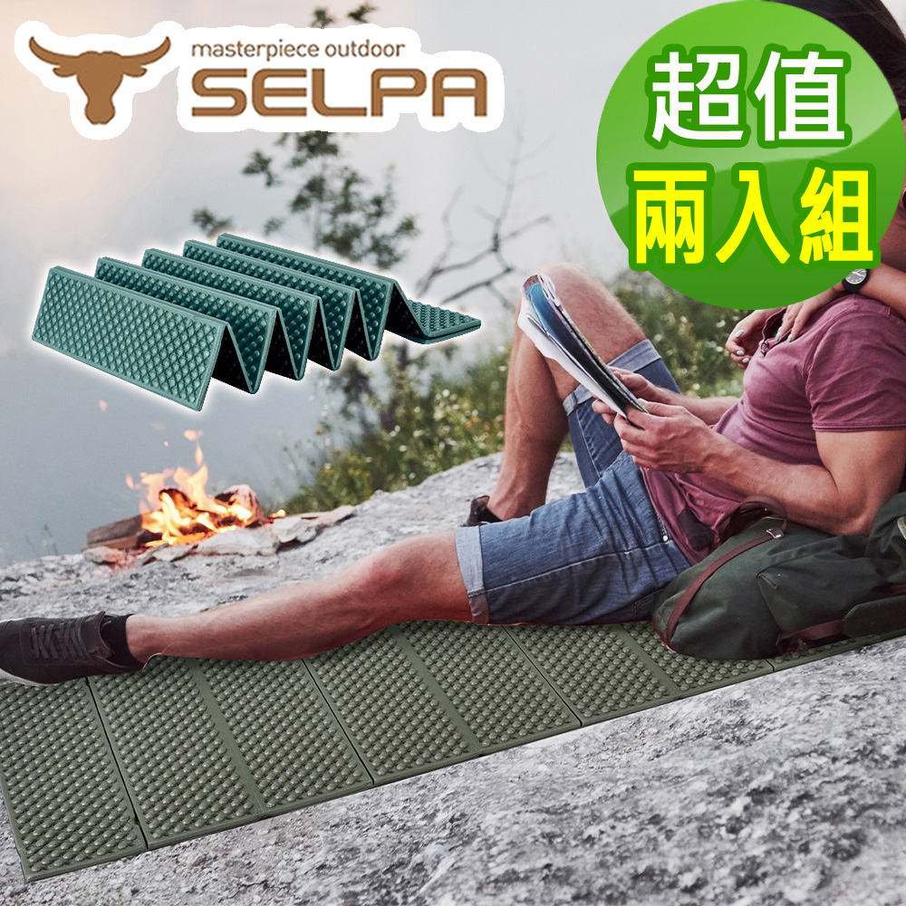 【韓國SELPA】超輕量加厚耐壓蛋巢型折疊防潮墊 蛋巢睡墊(四色)(超值兩入組) 綠色+隨機