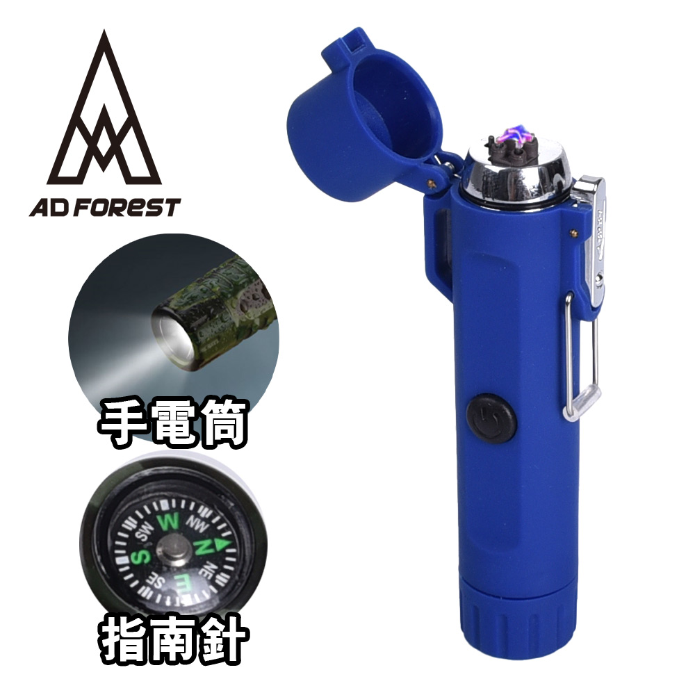 商品描述 | 【Ad-Forest】野外求生必備 戰隼三合一多功能電弧脈衝打火機 打火機 手電筒 指南針 生火 戶外 野炊 露營(三色) 藍色:高亮度手電筒特殊指南針設計頂級雙電弧火焰堅固防水外 |
