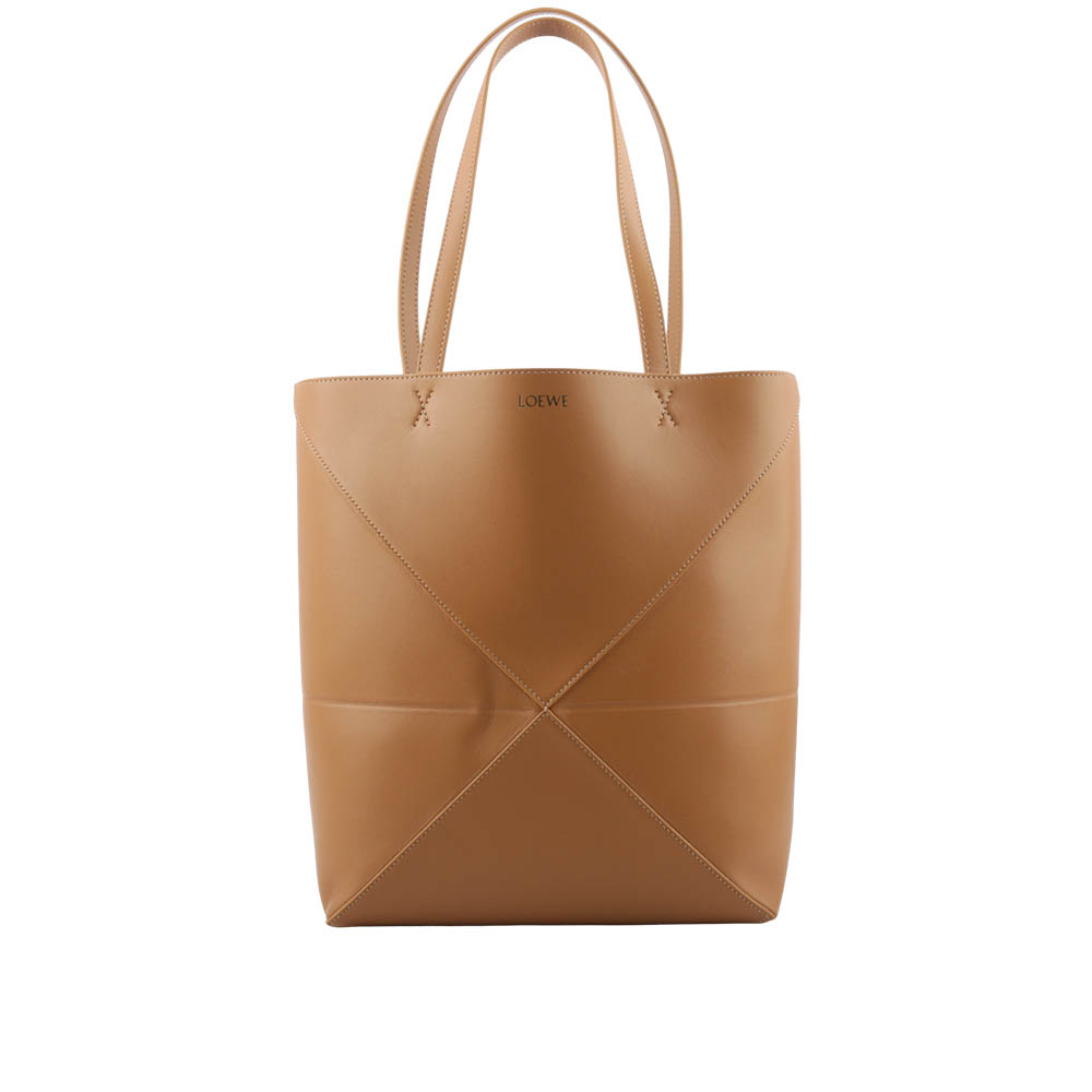 【LOEWE 羅威】Puzzle 亮面小牛皮摺疊托特包(暖沙色) 平行輸入