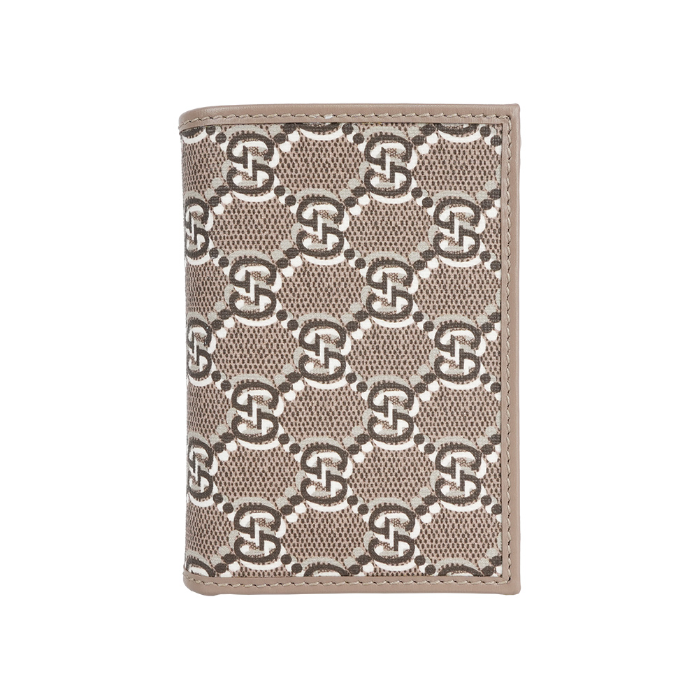 【GUCCI】GG Shadow 塗層帆布釦式二折短夾(奶茶色) 平行輸入