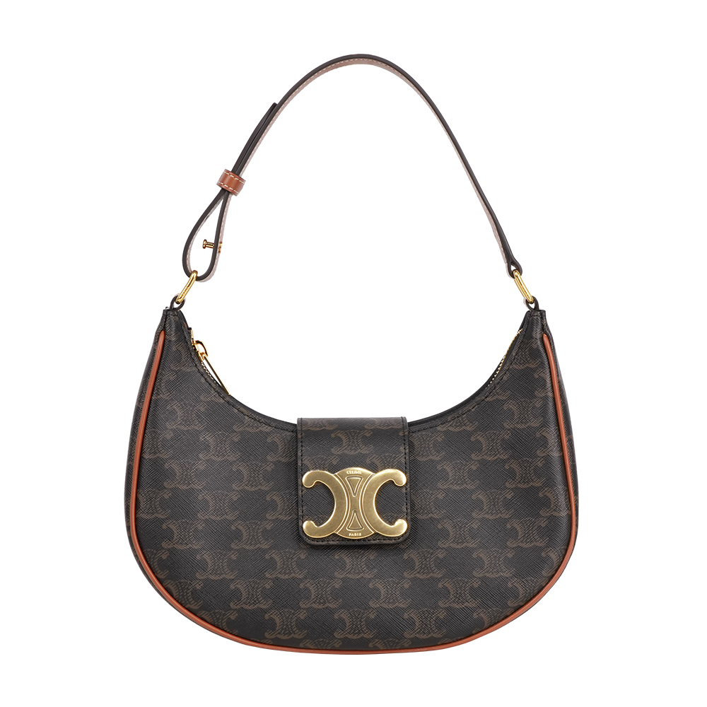 【CELINE】AVA TRIOMPHE 帆布小牛皮中款肩背包(棕褐色) 平行輸入