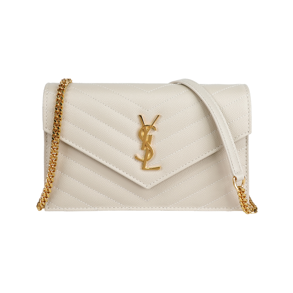 | 商品名 / | 【YSL】V紋荔枝皮金釦小款WOC 斜背包(復古白) 平行輸入 |