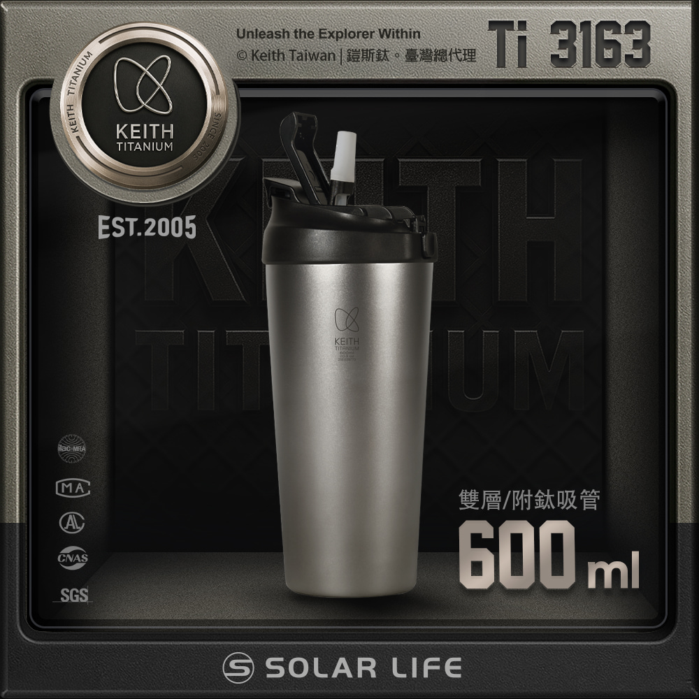 Keith鎧斯Ti3163鈦真空雙飲保溫杯 附鈦吸管 600ml